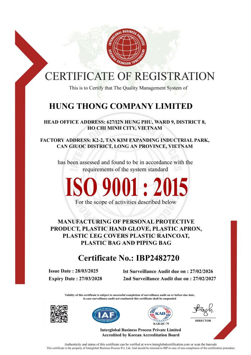 | Bao tay | HDPE / CPE / TPE / PVC (Vinyl) |
